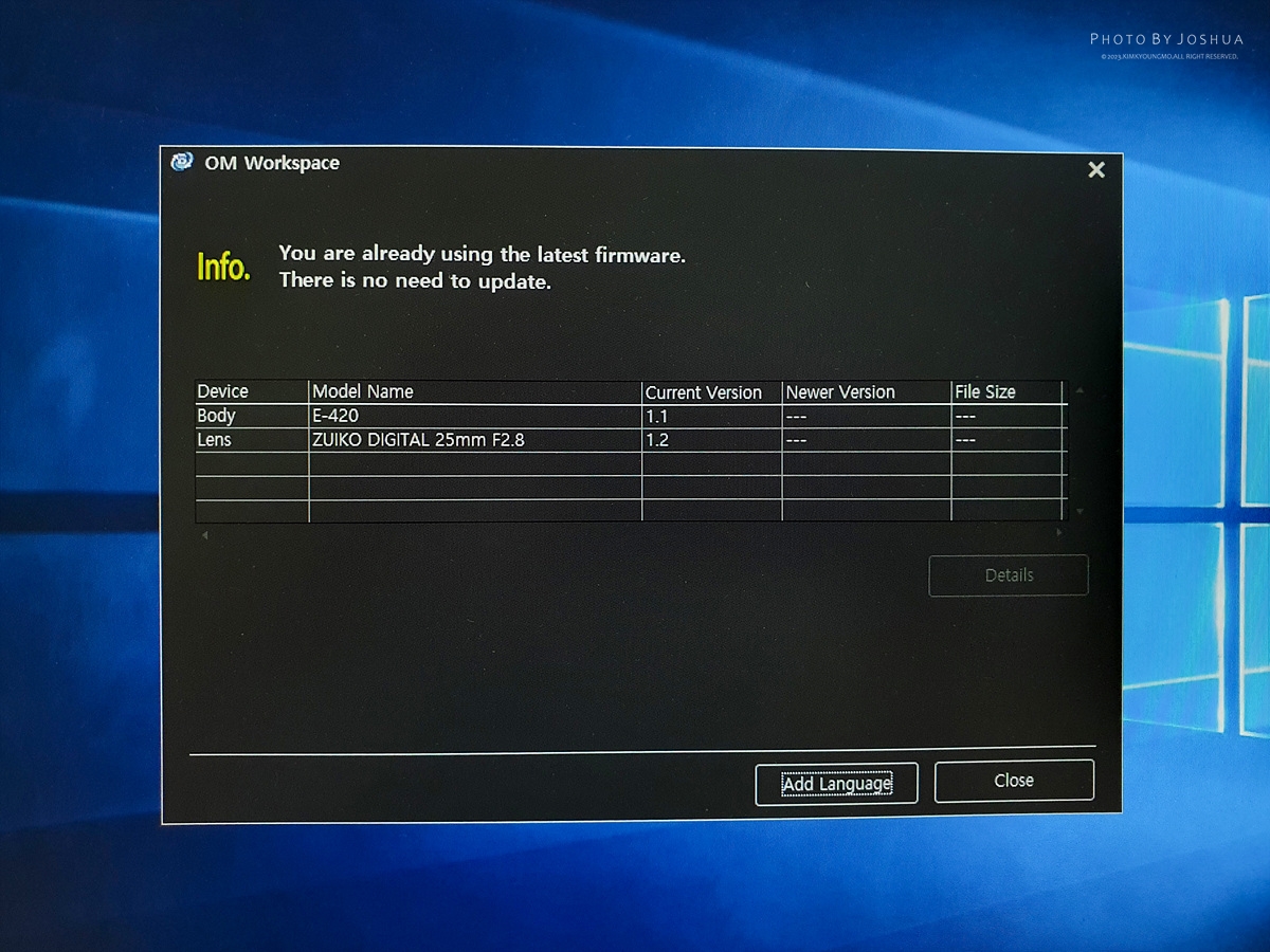 난 카메라를 시켰는데 헬로아이 보리보리 유기농음료수가 도착했다.휴~ 열어보니 다행히 e-420 박스가 보임.그 당시 함께 증정했었던 속사케이스. 쓸일이 없어 바로 휴지통으로 바이바이함.세월의 풍파를 보여주는 박스. 15년전에는 누군가의 첫 카메라로 사랑을 받았을 것이다...그당시의 시대상을 보여주는 윈도우 비스타..박스를 열어보니 빼곡히 내용물이 들어있었다.그 당시 올림푸스 마스터 CD. 지금은 인터넷상에서 다운로드하여 바로 설치가능. 혹시 모르니 CD는 보관하자.호환계의 황태자 호로스벤누. BLS5가 들어있었다. 물론 정품배터리도 하나 더 있었다. e-450과 함께 사용이 가능함 오예!한번도 펼쳐본 흔적이 없는 영문매뉴얼과 한글사용설명서. 구하기 힘든 올림푸스 usb 케이블도 있구나!급하게 닦고 이오펜을 마운트 해보았다.마포 아입니다. 포서드입니다.e-450 보다 이전세대의 메뉴모습.판매자분께서는 다이얼 헛 도는 증상이 있어 이오펜 렌즈값만 받고 바디도 함께 주심. 땡큐 베리 감사!! 써보니 헛돌긴 하지만 차분히, 천천히 돌리면 또 사용은 가능함. 그 외 이상은 없었음.정말 팬케익처럼 얇은 렌즈다. 마운트해서 가방에 쏙 들어감 ㅋㅋ물론 너무 가볍고 렌즈자체도 이쁘다. 이쯤되면 사진이 취미가 아니고 카메라 및 렌즈 모으는게 취미가 되어버렸다.누군가에겐 소중한 카메라였으나 세월이 지나 헐값에 나오고 말았다.가벼워서 미니삼각대에도 잘 올라감.이로써 올림바디가 총 3개가 되었네.쌍둥이 처럼 닮은 420과 450. 그리고 최애코닥CCD의 오백이사이공이야 반갑다.e-420과 e-450은 정말 쌍둥이바디처럼 똑같다. 다만 e-450에는 ART SCN모드가 탑재되어있다.업데이트를 확인해보니 최신버젼이 아니었네렌즈, 바디 별로 각각 업데이트 실행시켜줌이제 업데이트도 완료