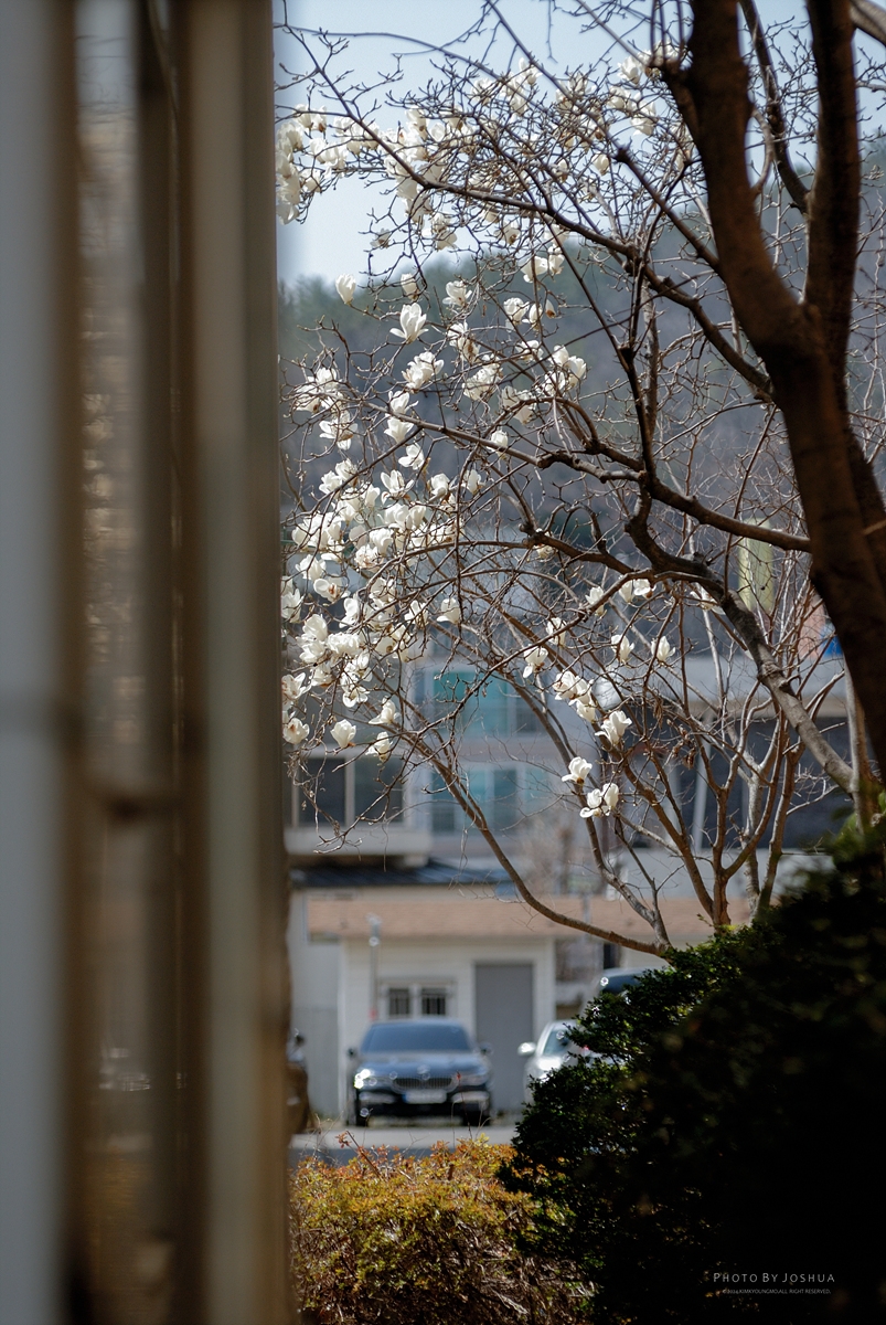 목련이었다. 탐스럽고 큰 목련인데 짧고 굵게 피기 때문에 있을 때 찍어주자