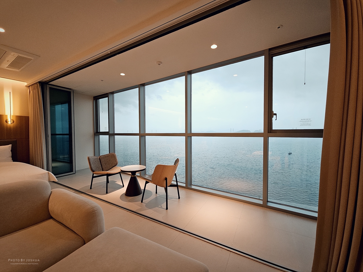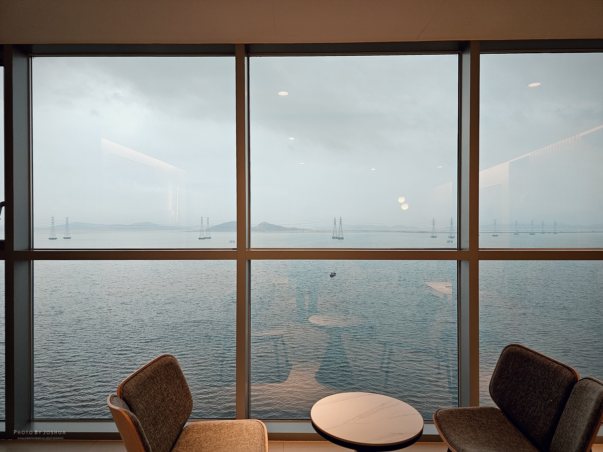 [Samsung Galaxy S23 Ultra] 3층 로비로 들어서면 바다뷰가 시원하게 보인다. 조식먹을 식당도 바로 3층 로비 옆에 있다.