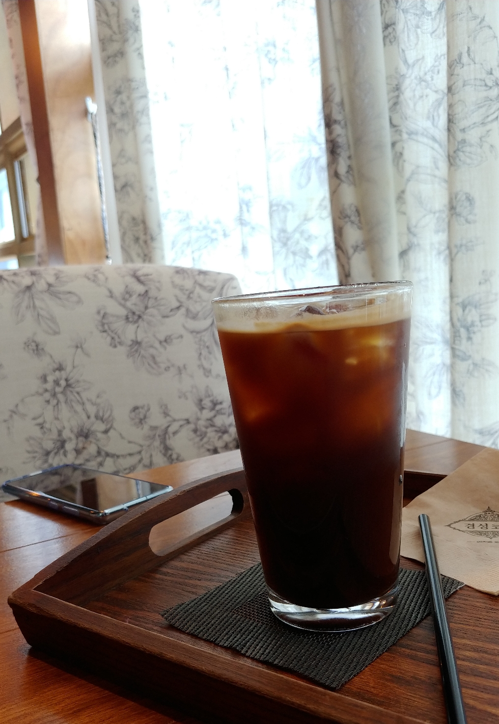 가게는 높은 천고를 가지고있었다. 사실 2층은 머리를 숙여야 들어갈 수 있어 패쑤. 3층으로 자리를 잡았다. 인테리어는 모던이즘을 표방허지만 커피주문하고 진동벨이 울리면 내가 직접 가지러 가야해 쳇!