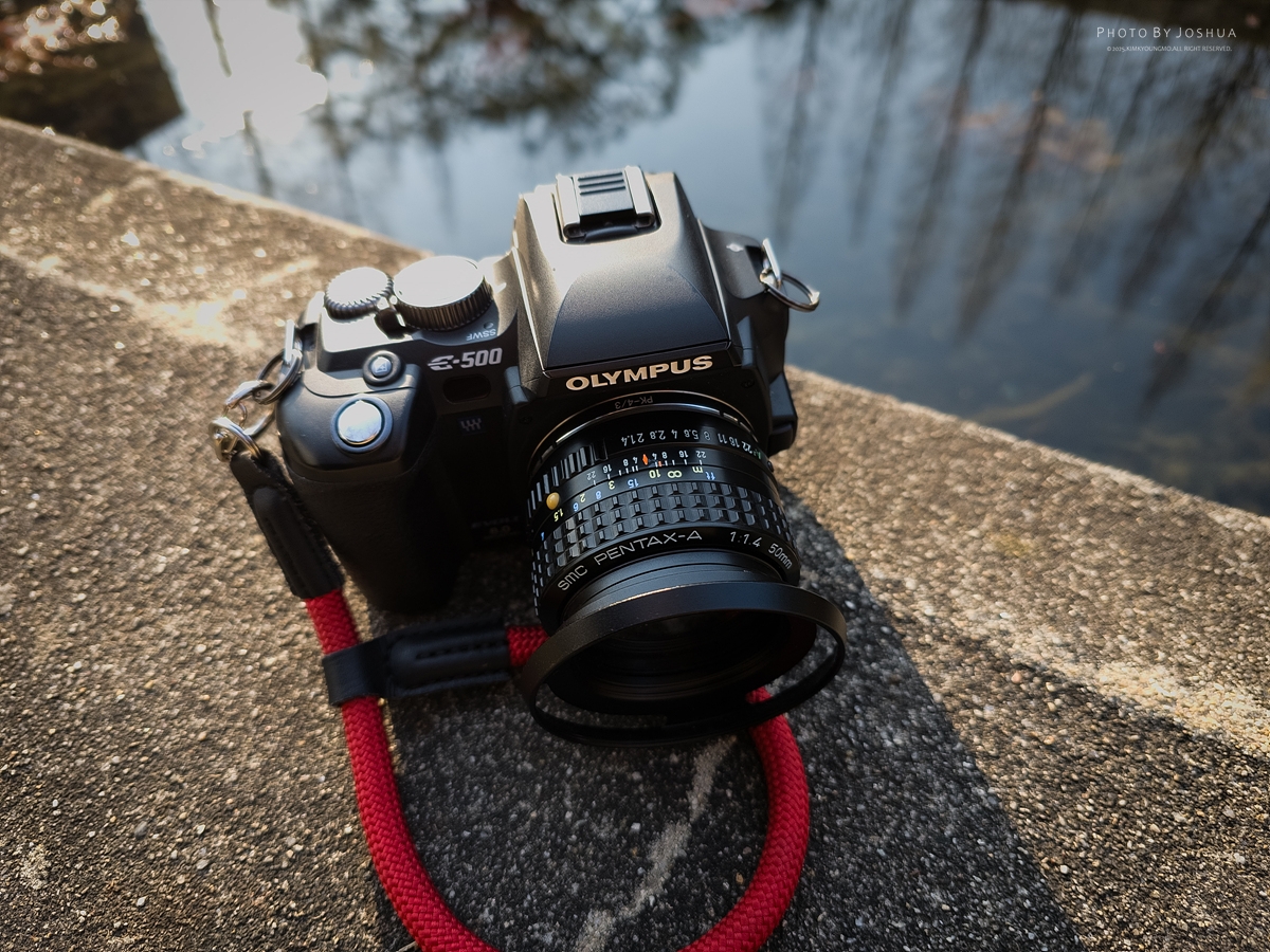 [Samsung Galaxy S23 Ultra] 이번엔 올림푸스 e-450 을 마운트 해준 모습[Olympus e-450 + A 50mm f1.4] 포서드바디에서도 사용할 수 있도록 어댑터를 구하였다.[Olympus e-450 + A 50mm f1.4] 무려 100mm f1.4 렌즈로 변신