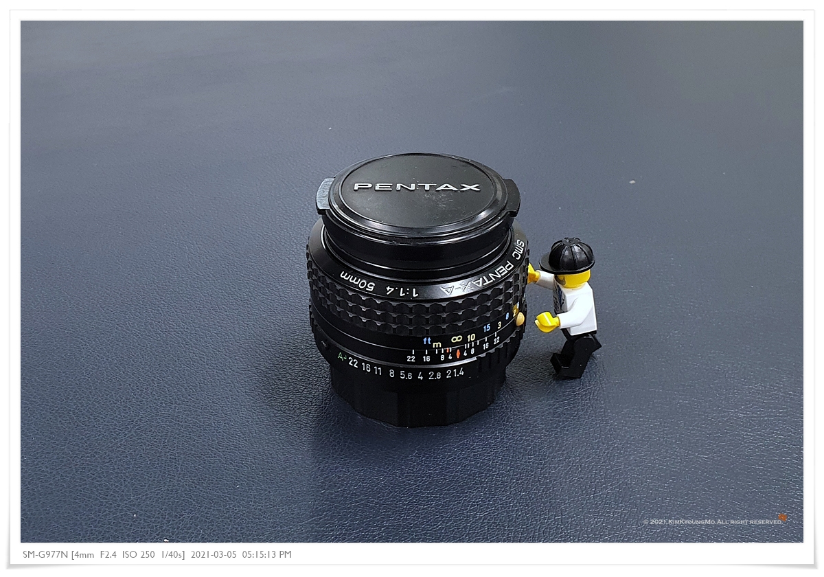 바디모으기가 어느정도 마무리되고 이젠 렌즈모으기에 들어간다. 기존 피닉스50.7렌즈를 잘 사용하고있었는데 퇴근길 스냅 시 좀 더 유리한 셔터스피드를 위해(는 핑계고 f1.4 사고싶은게 이유임) smc a50.4 수동렌즈를 스르륵에서 구매하였다.