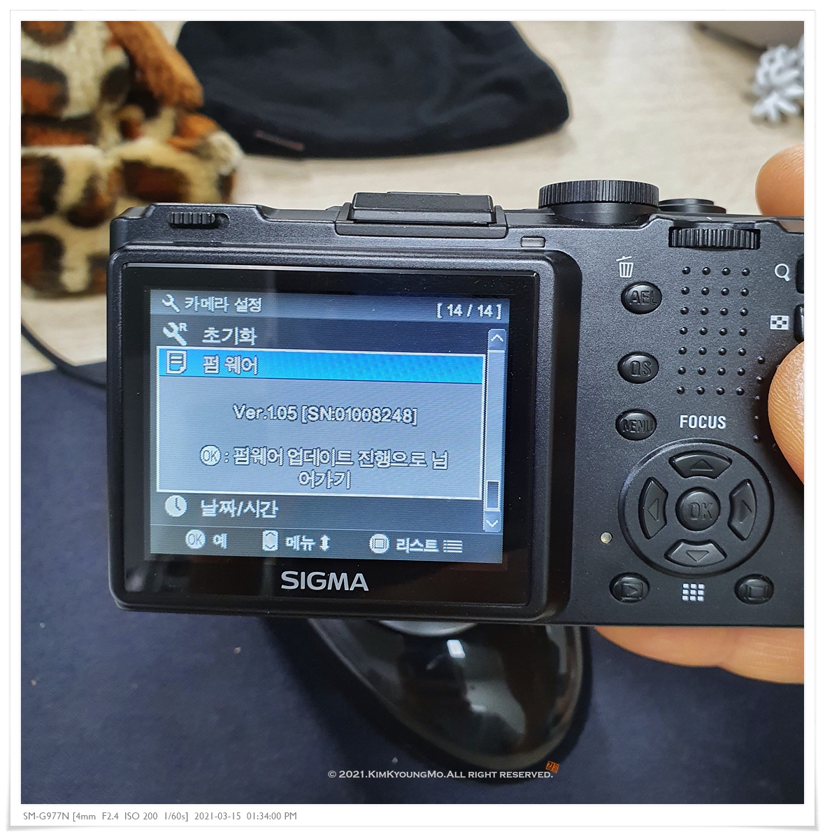 전원 : 시그마 BP-31. 몇 장 찍지못한다. 배터리 관리잘하면 100장 정도? 계속 켜두고 찍으면 40장도 못찍음
