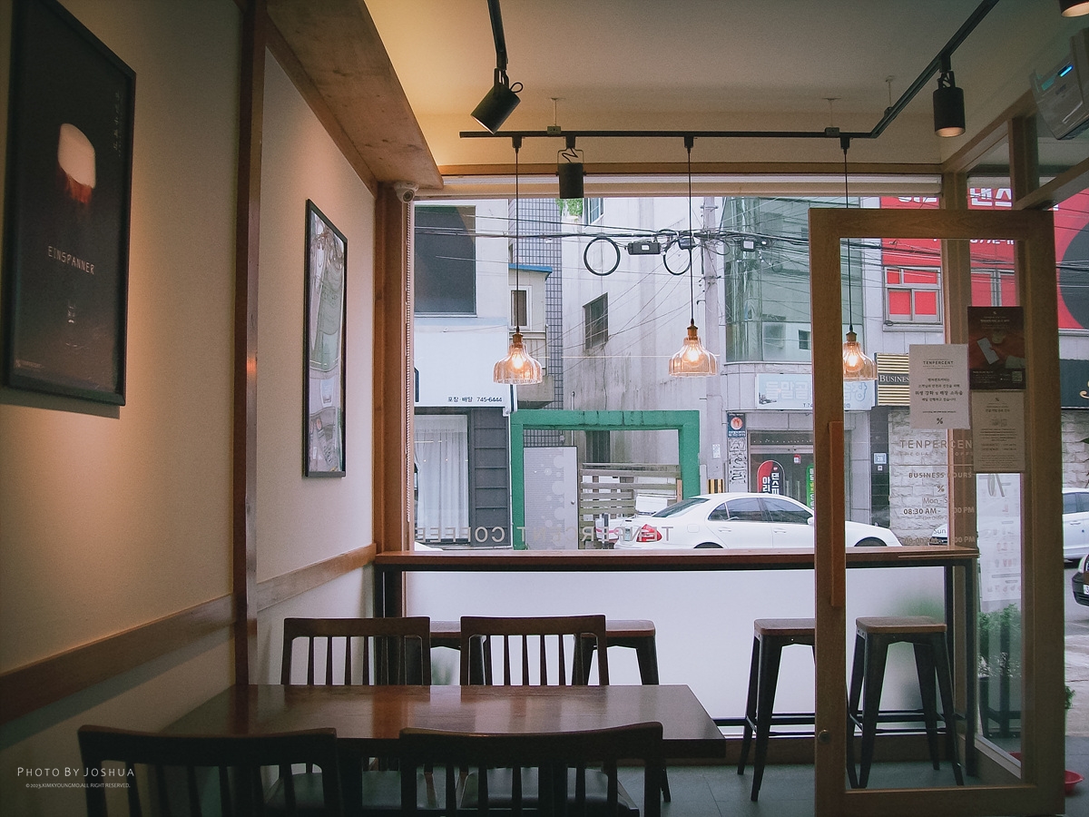 집근처 지나다 우연히 방문한 카페. 바로앞에 주차면이 있긴하지만 2개 정도뿐이라 주차는 불편하다. 슬리퍼생활권안에 있는 카페라 쓰래빠끌고가면 딱 좋음.