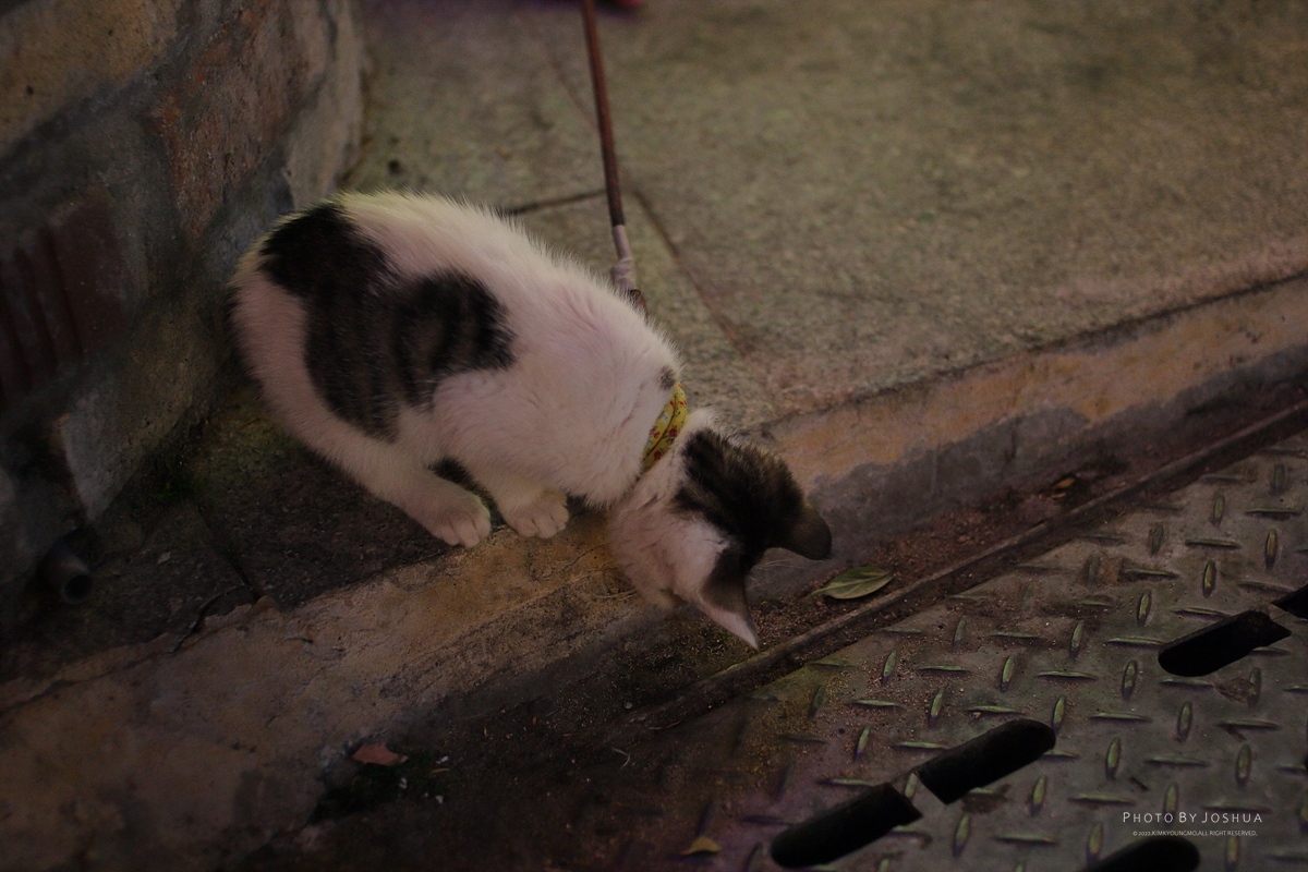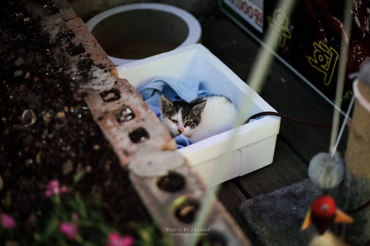 [Canon 5D + EF 50mm f1.8 STM] 10월부터 퇴근길에 우연히 발견한 겨비. 삼겹살집에서 키우는 고양이라 이름을 내맘데로 겨비라고 지었다. 물론 나만 부르는 이름이다. 22.10.6