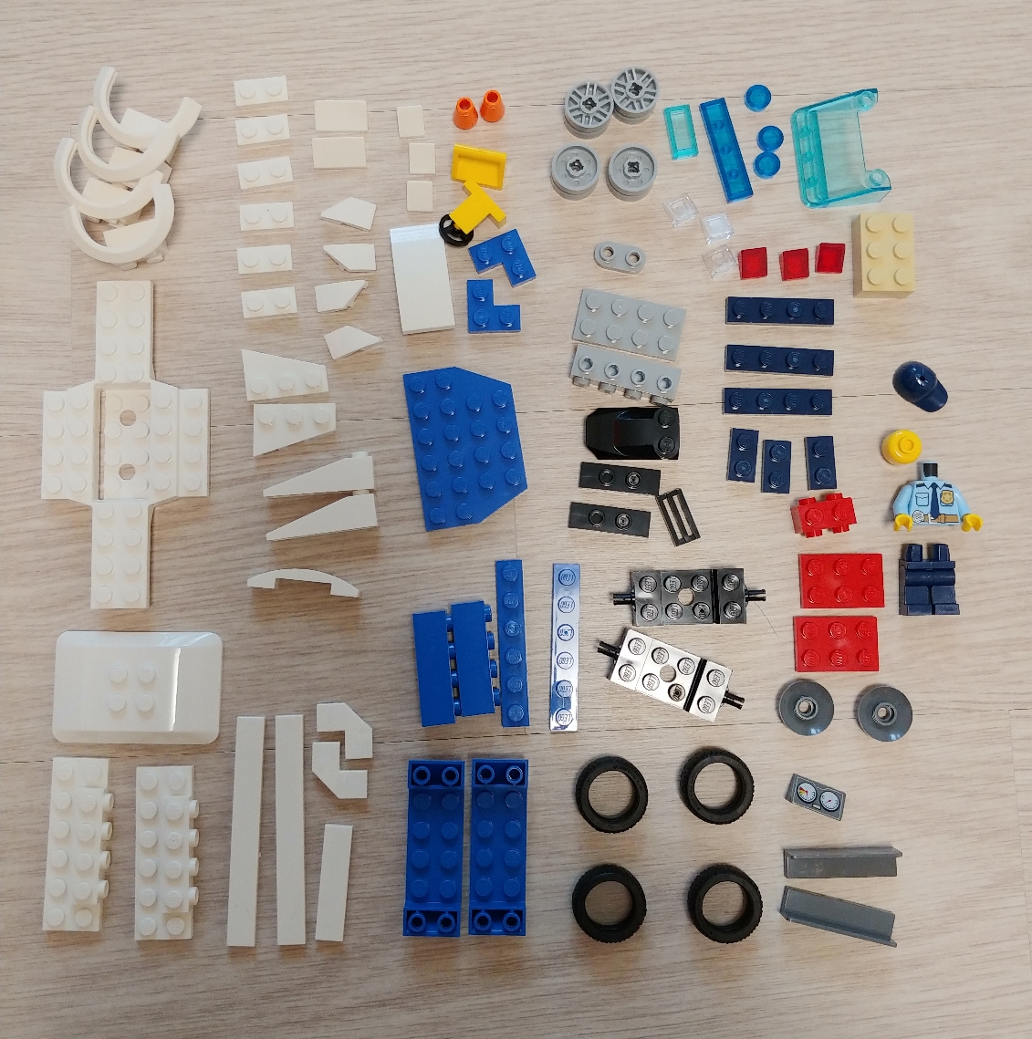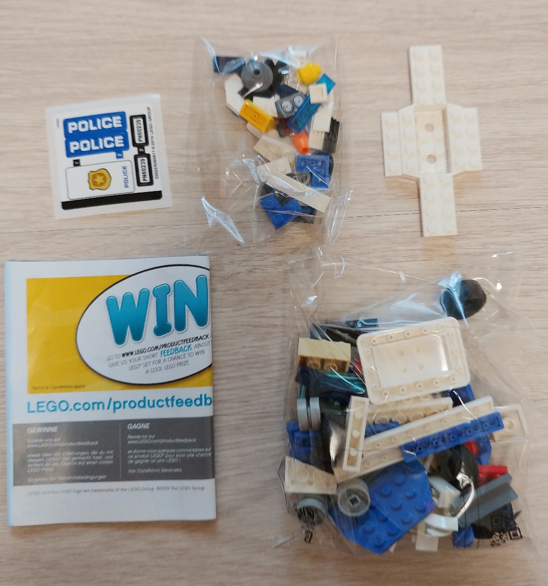박스제거샷! 스티커 하나 접힌 인스. 봉지 2개. 처음보는 신규차량샷시 하나.