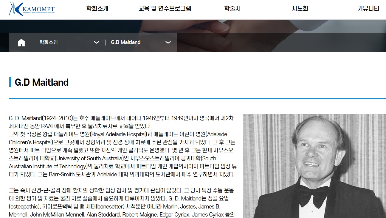 ◎대한메이틀랜드정형도수물리치료학회 https://kamompt.org/main.tc